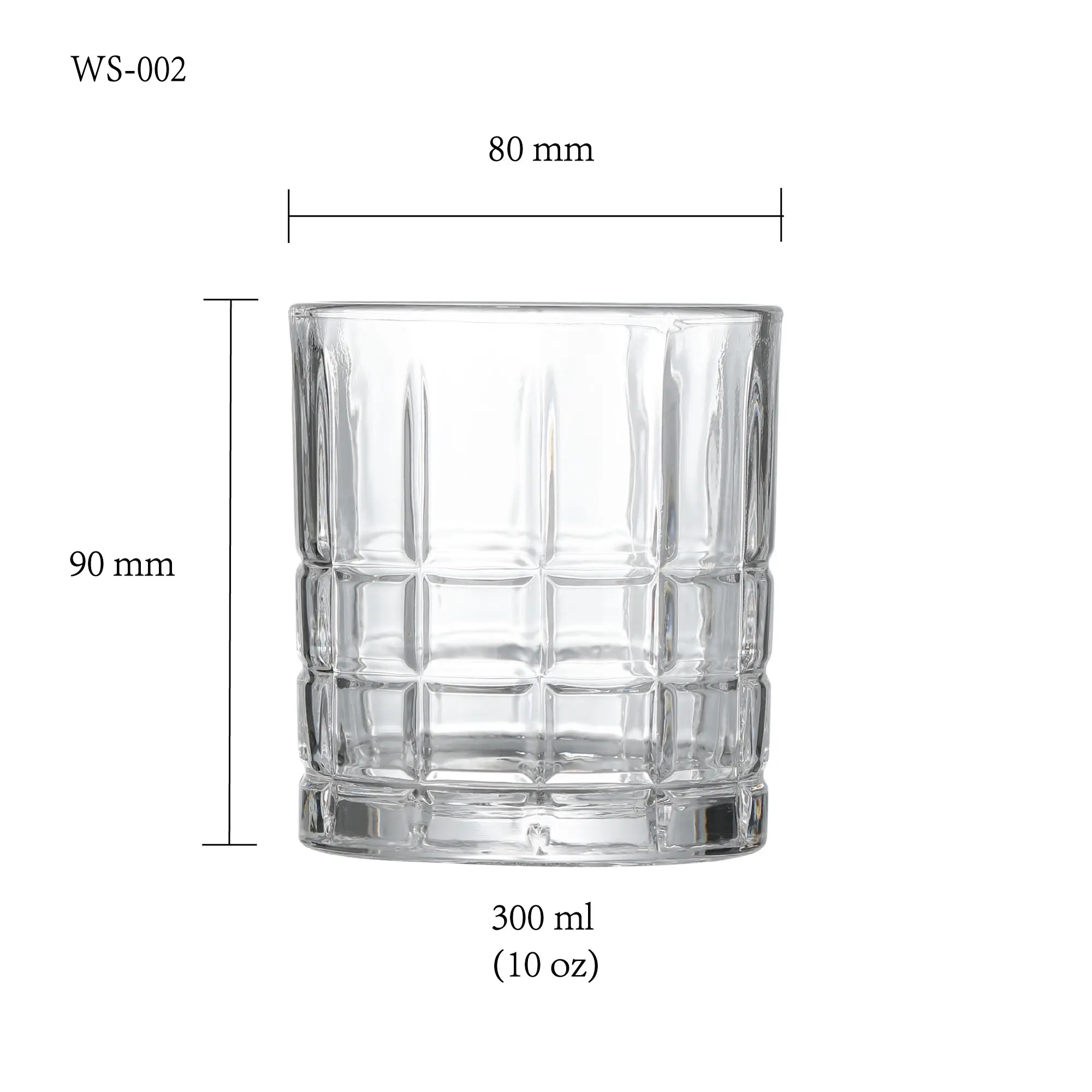 This old fashioned glass combines a classic tumbler silhouette with a grid-patterned surface that gives the design a clean, structured look. It works well for whiskey pours, spirits service, and old fashioned presentation, while the textured body adds more character than a plain glass.